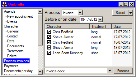 An example invoice, displayed in Microsoft Word 2007. The invoice combines two appointments.